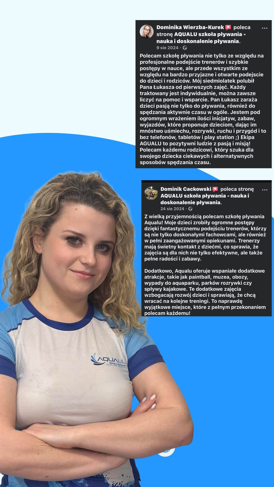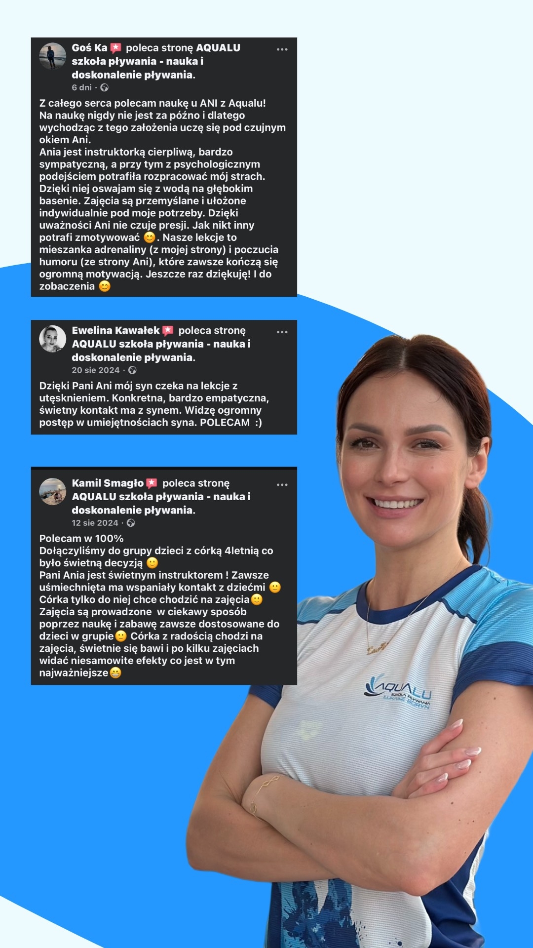 Pływanie to nie tylko sport – to także pasja, sposób na aktywny tryb życia oraz doskonała forma relaksu i zdrowego wysiłku. Dlatego w swojej pracy staram się inspirować moich podopiecznych, by czerpali radość z każdego pokonanego basenu. Jeśli szukasz trenera, który nie tylko nauczy Cię techniki, ale również zarazi miłością do wody, zapraszam na zajęcia!